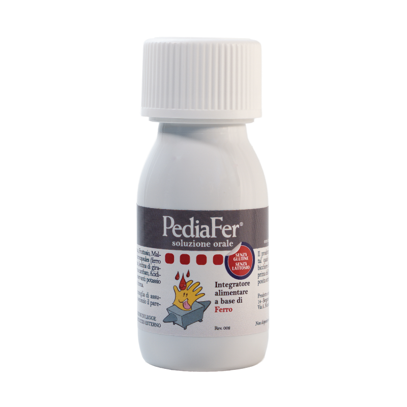 Indicazioni: PediaFer® soluzione orale è un integratore alimentare a base di Ferro, utile a colmare le carenze nutrizionali o l’aumentato fabbisogno. Il Ferro contribuisce alla normale formazione dei globuli rossi. Il Ferro inoltre partecipa alla normale formazione dell’emoglobina e al normale trasporto di ossigeno nel sangue.