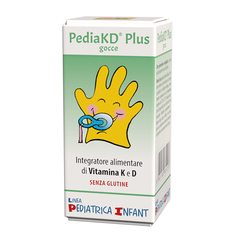Indicazioni: PediaKD® Plus è un integratore alimentare di Vitamina D e Vitamina K indicato per colmare le carenze nutrizionali o gli aumentati fabbisogni di tali nutrienti. La vitamina K contribuisce alla normale coagulazione del sangue; la Vitamina D contribuisce al normale assorbimento del calcio e del fosforo, aiuta a mantenere le ossa e i denti sani e favorisce la normale funzione del sistema immunitario.