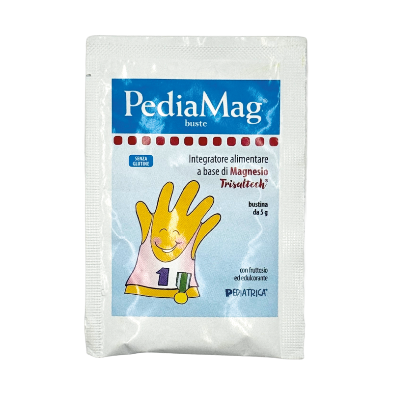 Indicazioni: PediaMag® buste è un integratore alimentare di Magnesio. Il Magnesio contribuisce all’equilibrio elettrolitico, aiuta il regolare funzionamento del sistema nervoso e supporta il mantenimento della funzione muscolare.