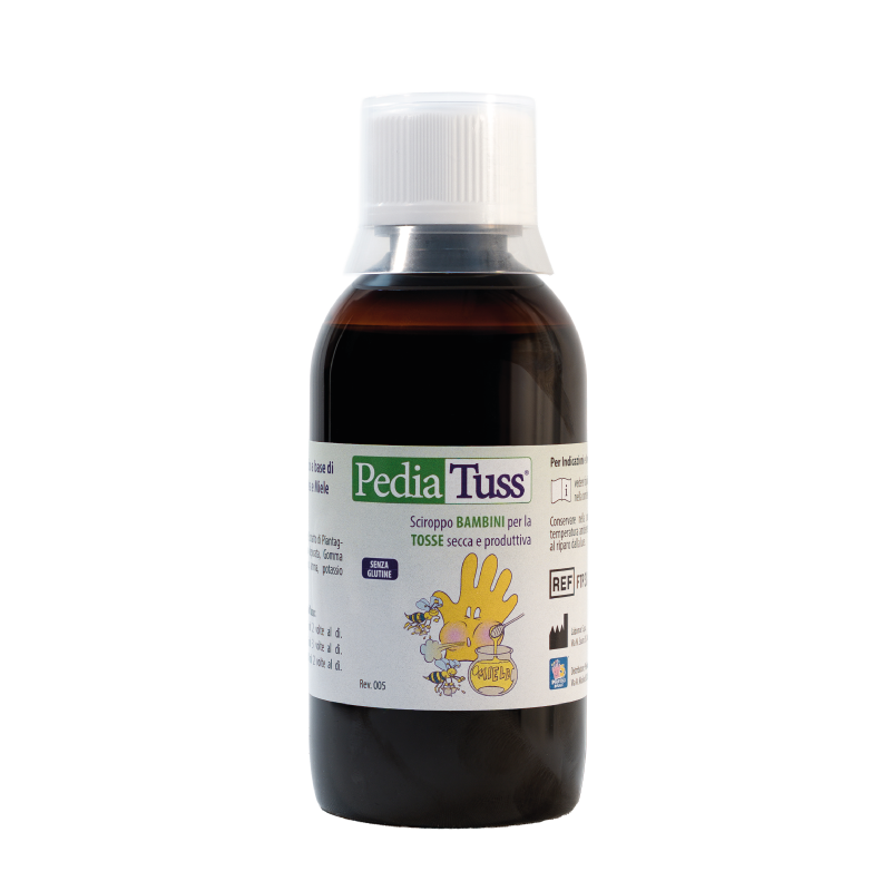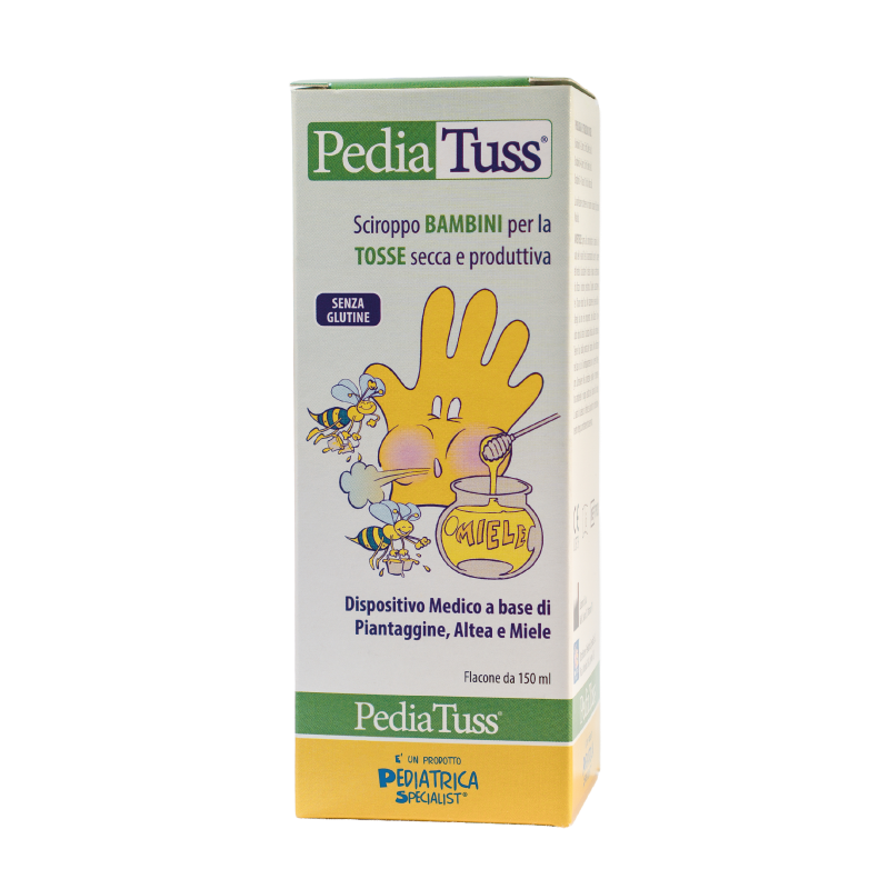 INDICAZIONI: PediaTuss® è un Dispositivo Medico a base di estratti naturali e miele, in grado di creare un film protettivo che calma la tosse proteggendo le prime vie aeree. Grazie alla presenza di estratti vegetali di dimostrata efficacia agisce creando una barriera protettiva che limita il contatto delle vie respiratorie con gli agenti esterni ad azione irritante, migliorando la funzionalità delle prime vie respiratorie, soprattutto nei periodi invernali, o quando fenomeni irritativi dovuti ad agenti esterni (freddo, smog, polvere e fumo), lo rendono necessario.